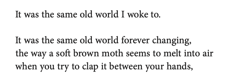 I like the wisdom in these lines, and there are many instances of not only the right words in the right order, but the right questions asked for the right times in this book, questions that go to the heart of our difficult present, even if the answers to these questions are not immediately apparent.
