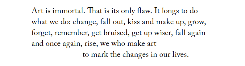 Here is an excerpt from a poem called “Cut it Out” where the poet hints Art is a sort of inventory marking the changes in our lives, but also measuring our own insights and spiritual growth: